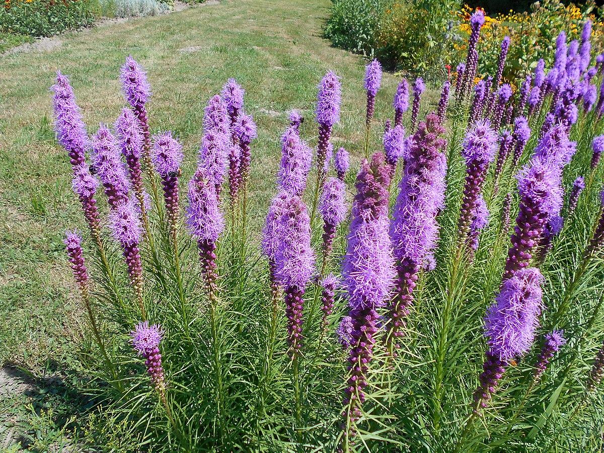 Su nombre científico es Liatris spicata, aunque también se la conoce como estrella llameante, raíz de la serpiente, pluma de Kansas o pincel del pintor.