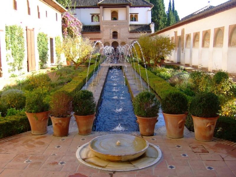 Los árabes diseñaron estos jardines para disfrutar del sonido del agua y de largos paseos rodeados de plantas aromáticas y con flor. Es un lugar creado para la reflexión, por lo que sus espacios se encuentran tras estrechos pasajes y celosías. El agua es el elemento principal del jardín.