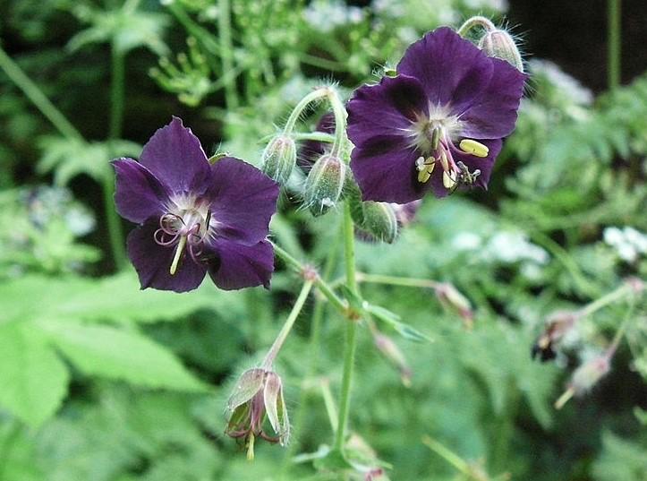 - Geranium phaeum L., uno de los tipos de geranios con flores curiosas