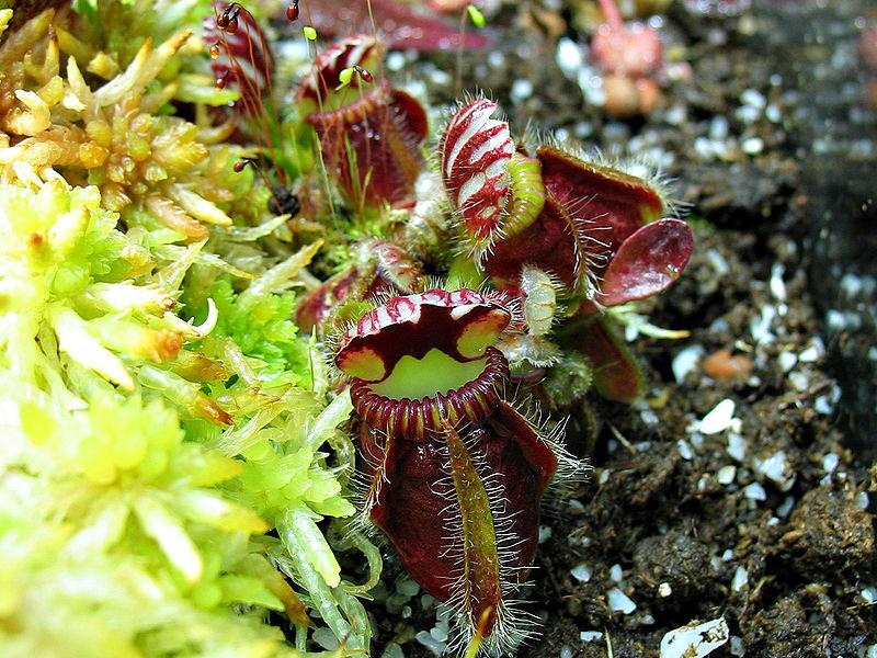 Esta pequeña planta carnívora tiene su origen en Australia y se alimenta mediante unas copas o jarros que sus hojas forman, en las que los insectos se ahogan. Es la única especie de entre las distintas plantas carnívoras, en que las hojas y las trampas están totalmente diferenciadas.