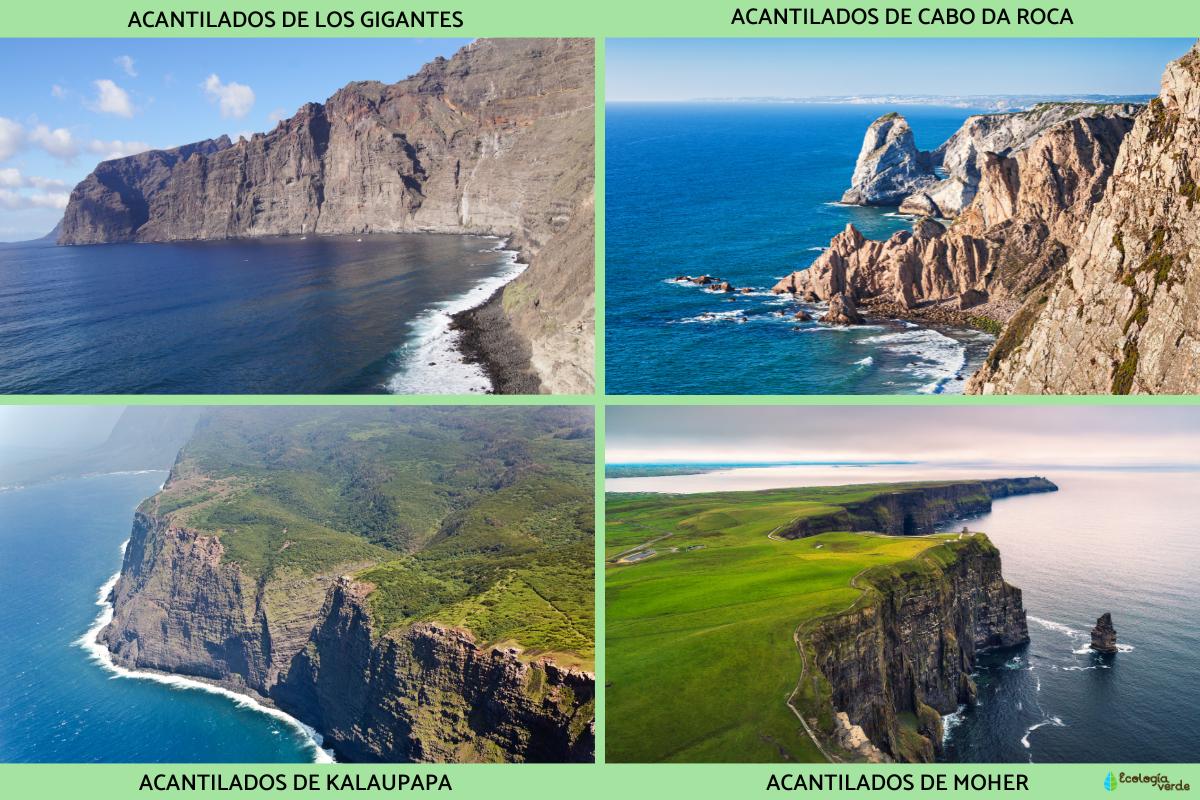 Un acantilado es una formación geográfica caracterizada por pendientes pronunciadas que se desarrolla principalmente en zonas costeras. Existen acantilados formados a causa de la erosión marina, de deslizamiento, de hielo, entre otros. Si quieres conocer más acerca de qué es un acantilado, tipos, como se forma y ejemplos, continúa leyendo este interesante artículo de EcologíaVerde.