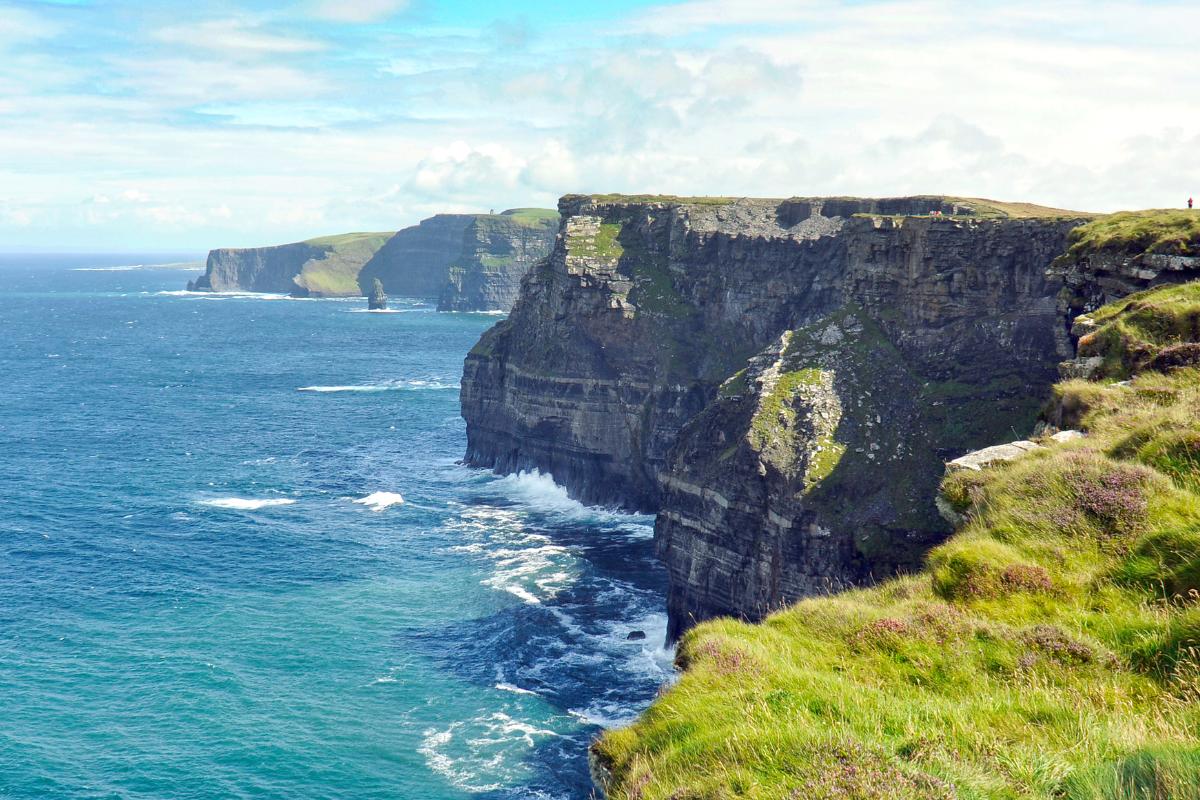 - Acantilados de Moher (Irlanda): es uno de los acantilados más icónicos del mundo. Se extiende a lo largo de 14 km en la costa oeste de Irlanda y alcanzan los 214 metros de altura. Sus paredes de roca oscura caen casi verticalmente al océano Atlántico.