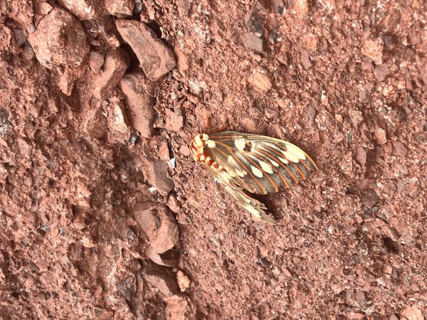 - Las alas inferiores son las más pequeñas: tienen principalmente un color crema o anaranjado, como la calavera. Éstas también tienen dos líneas más oscuras paralelas al margen.