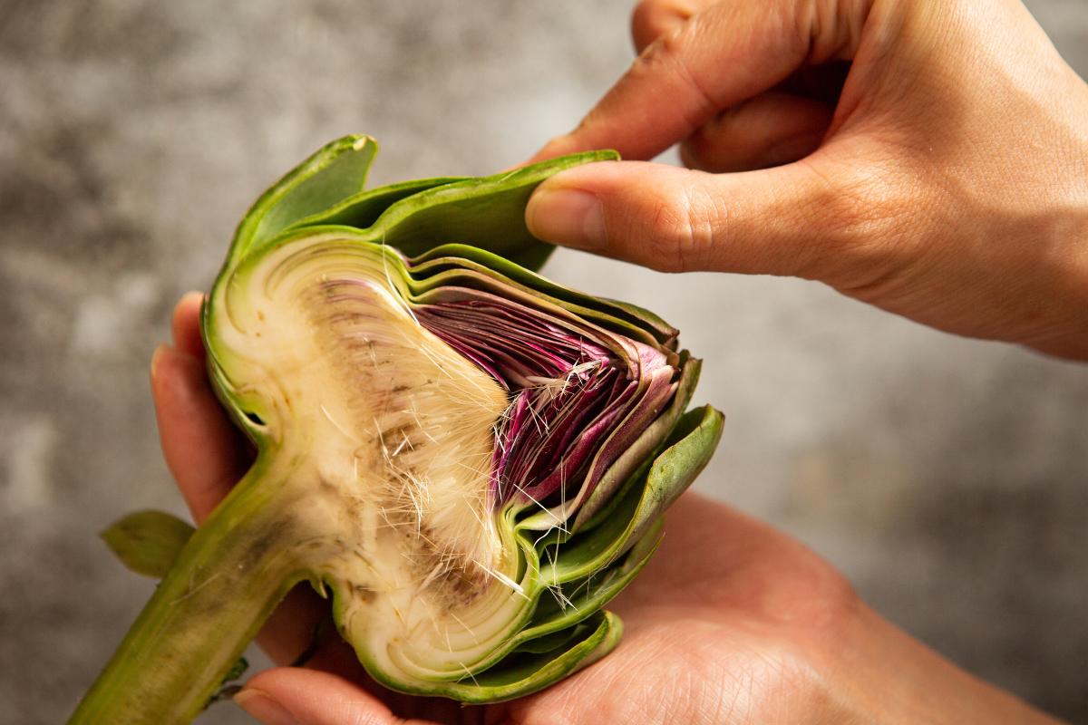 - Comprueba si está lista. Sabrás que las alcachofas están cocidas cuando puedas desprender las hojas fácilmente del tallo.