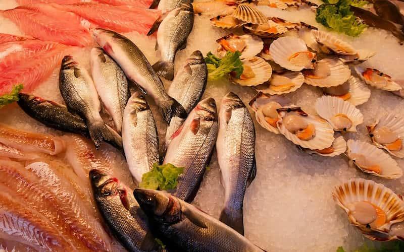 Ejemplos de estos son el arenque, salmón, bacalao, sardina, langosta, caracol, cangrejo, y muchas otras especies provenientes del mar.