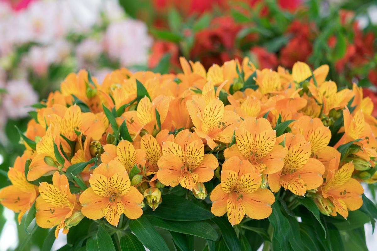 - Puedes encontrar la flor de Alstroemeria con flor de color blanca, rosa, amarilla, morada o naranja, con dibujos dentro de la misma flor. Una vez cortada, la flor puede durar hasta dos semanas con los debidos cuidados.