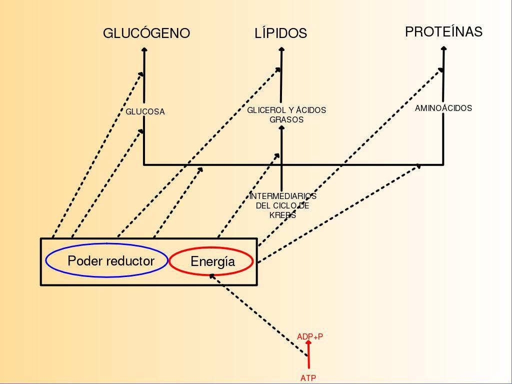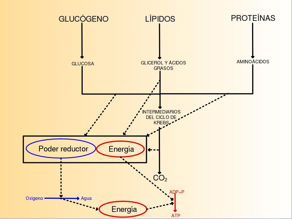 - Etapa III: El grupo acetilo del acetil-CoA entra al ciclo de Krebs para oxidarse en los compuestos finales del catabolismo: el CO2 y H2O. Aquí comienza la etapa I del anabolismo, pues el catabolismo provee al anabolismo de materias primas, manteniendo un balance.