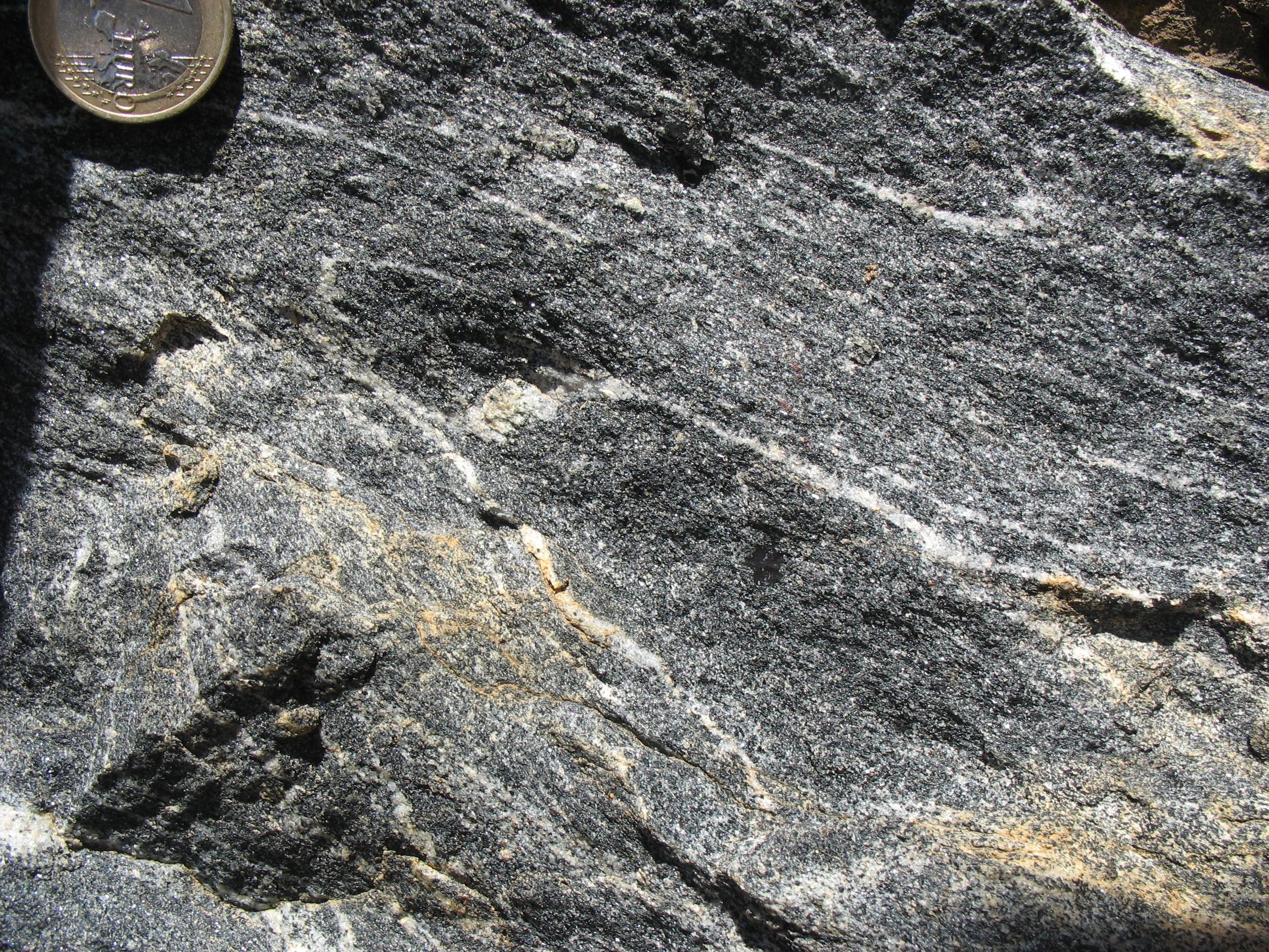 - Composición mineral: aunque las anfibolitas son predominantemente compuestas por anfíboles (especialmente hornblenda), la presencia de plagioclasa es también un indicativo. Estos minerales pueden identificarse por su brillo vítreo y su dureza, que puede ser verificada mediante pruebas de rayado.