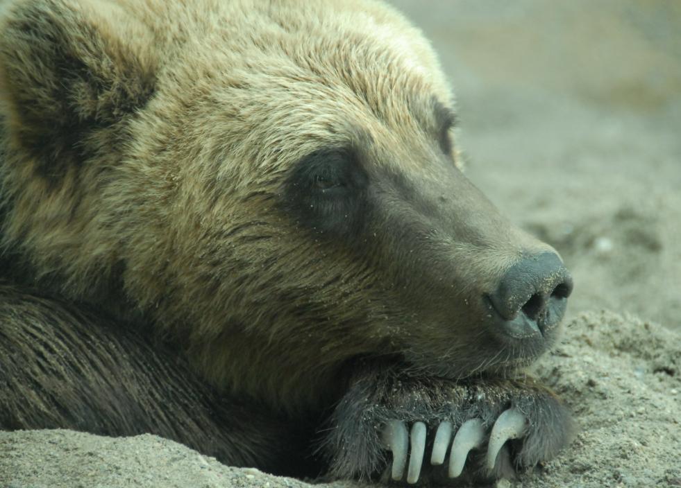 Este es el oso pardo que tiene las garras más grandes. Llegan a medir hasta 9 centímetros y son usadas para coger y perforar fruta, escarbar en busca de raíces, tubérculos o incluso animales subterráneos para alimentarse. También le son muy útiles a la hora de pescar. Sus garras son muy codiciadas y son una de las causas por las que los osos grizzly son cazados ilegalmente.