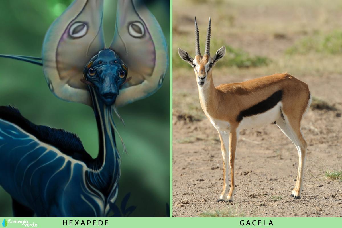 Es un animal herbívoro de seis patas, color azul, muy parecido a las gacelas. La gacela (Gazella spp.) es un antílope de tamaño mediano, de los animales más rápidos que hay, puede alcanzar una velocidad de casi 90 kilómetros por hora. Vive en el sureste asiático o en las sabanas africanas, comiendo hierbas o pequeños arbustos.