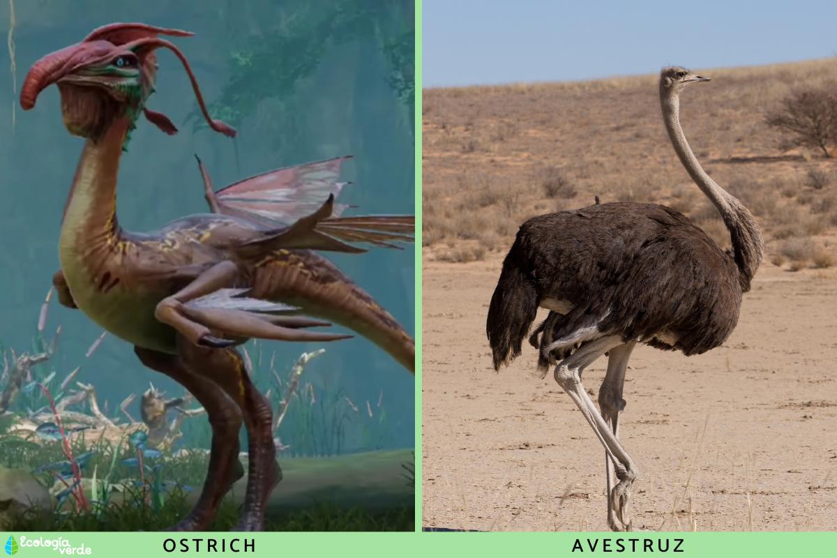 Creado a partir, muy seguramente, del avestruz (Struthio camelus), una ave que ha perdido su capacidad de volar. Las avestruces son grandes, miden de 2 a 3 metros de alto, y pesan de 100 a 160 kilogramos. También son ágiles corredoras, alcanzando 50 kilómetros por hora.
