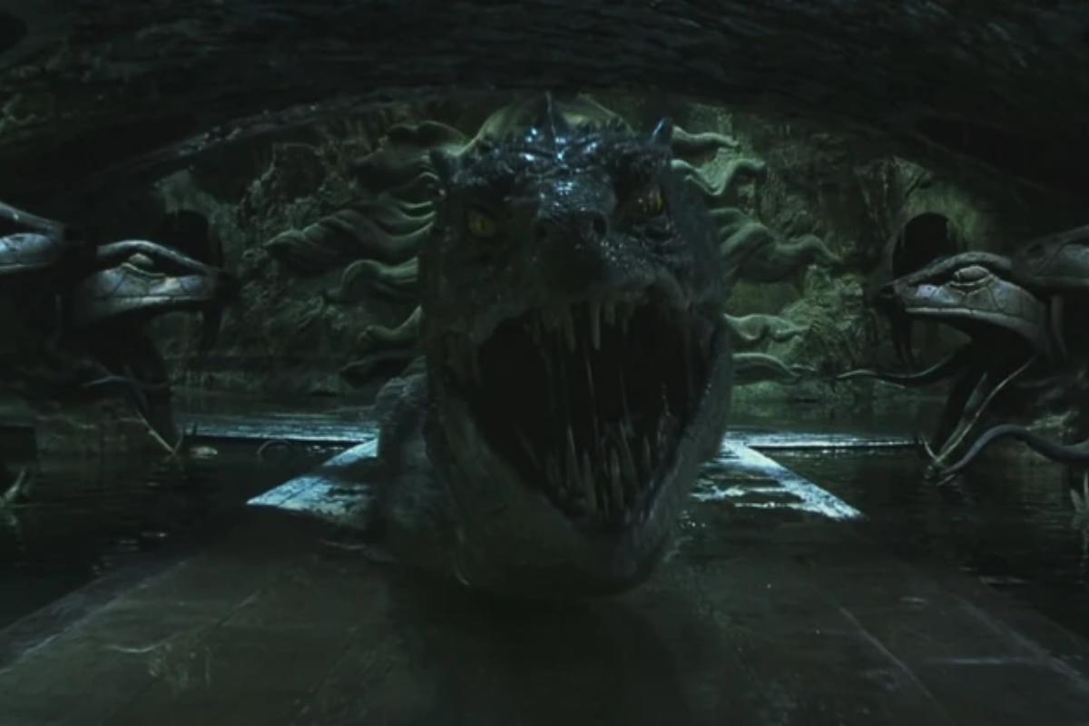 El basilisco es considerado uno de los animales fantásticos de Harry Potter más difíciles de ver, ya que salen de un huevo de gallina que ha sido incubado por un sapo. Se trata del rey de las serpientes, pues es una serpiente gigantesca, fuerte, venenosa y que puede vivir varios siglos, pero, además, puede matar a quienes la miren directamente a los ojos o petrificarlos si la miran a los ojos indirectamente. Las arañas, incluidas las acromántulas, huyen de él por ser su enemigo mortal. El basilisco está presente en las mitologías de muchas culturas en la vida real.