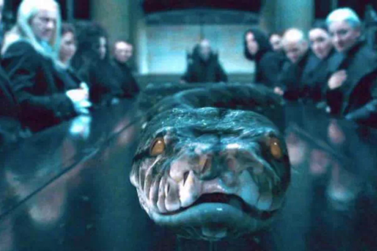 Nagini es una serpiente gigante que en realidad es una maledictus, es decir, una humana que tiene una maldición en su sangre, que termina por convertirla en una serpiente gigante de forma permanente. Acaba siendo la fiel compañera de Lord Voldemort, quienes hablan parsel entre ellos, y este la convierte en un horrocrux.