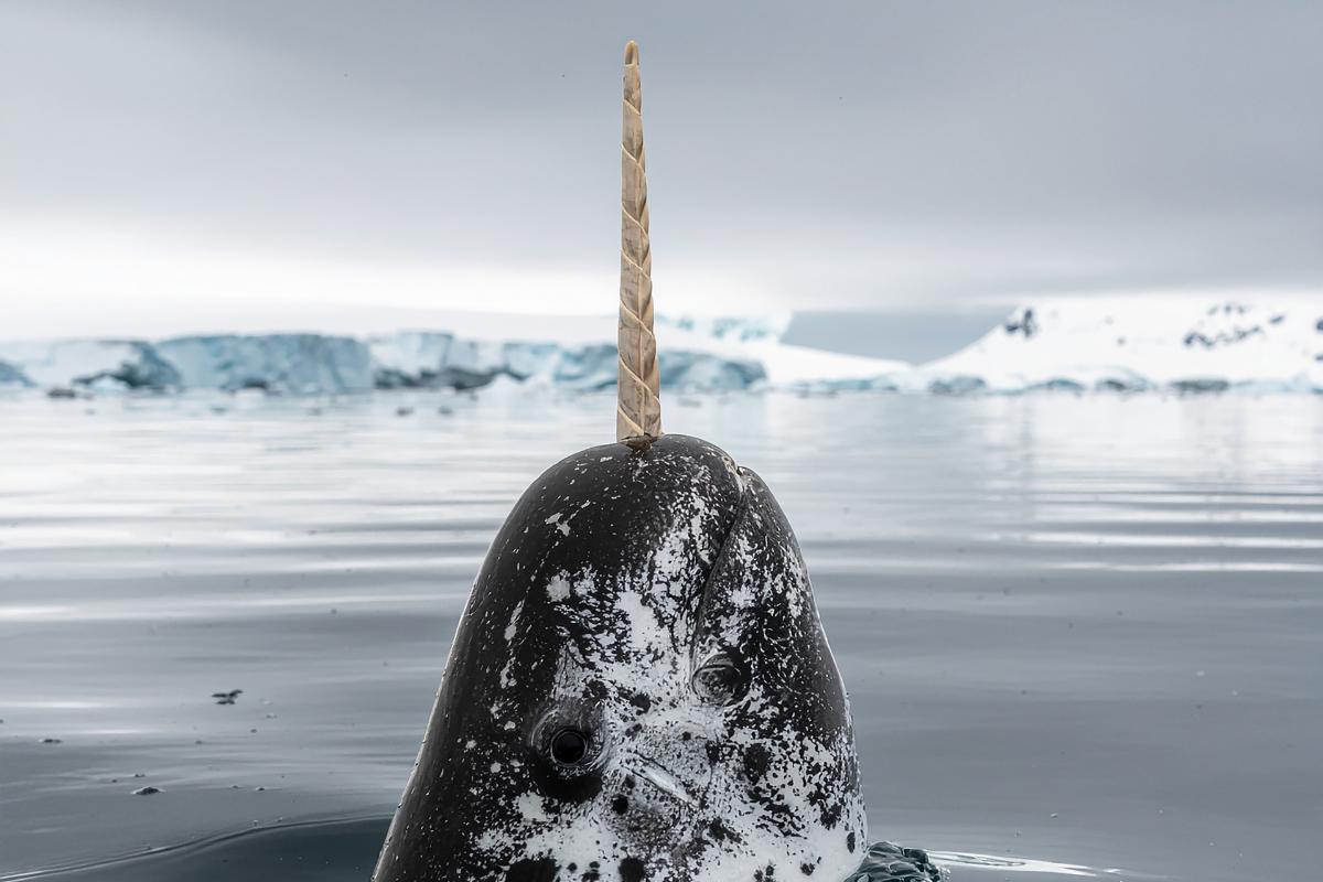 El narval, conocido como el “unicornio del mar”, es una de las criaturas más singulares del Ártico. Su largo colmillo en espiral, en realidad un diente canino, puede medir hasta tres metros y se cree que cumple funciones sensoriales y de caza. Vive en grupos y se alimenta de peces, calamares y camarones bajo el hielo. Su gruesa capa de grasa lo mantiene caliente en las frías aguas polares, y su naturaleza social lo convierte en un fascinante animal del invierno.
