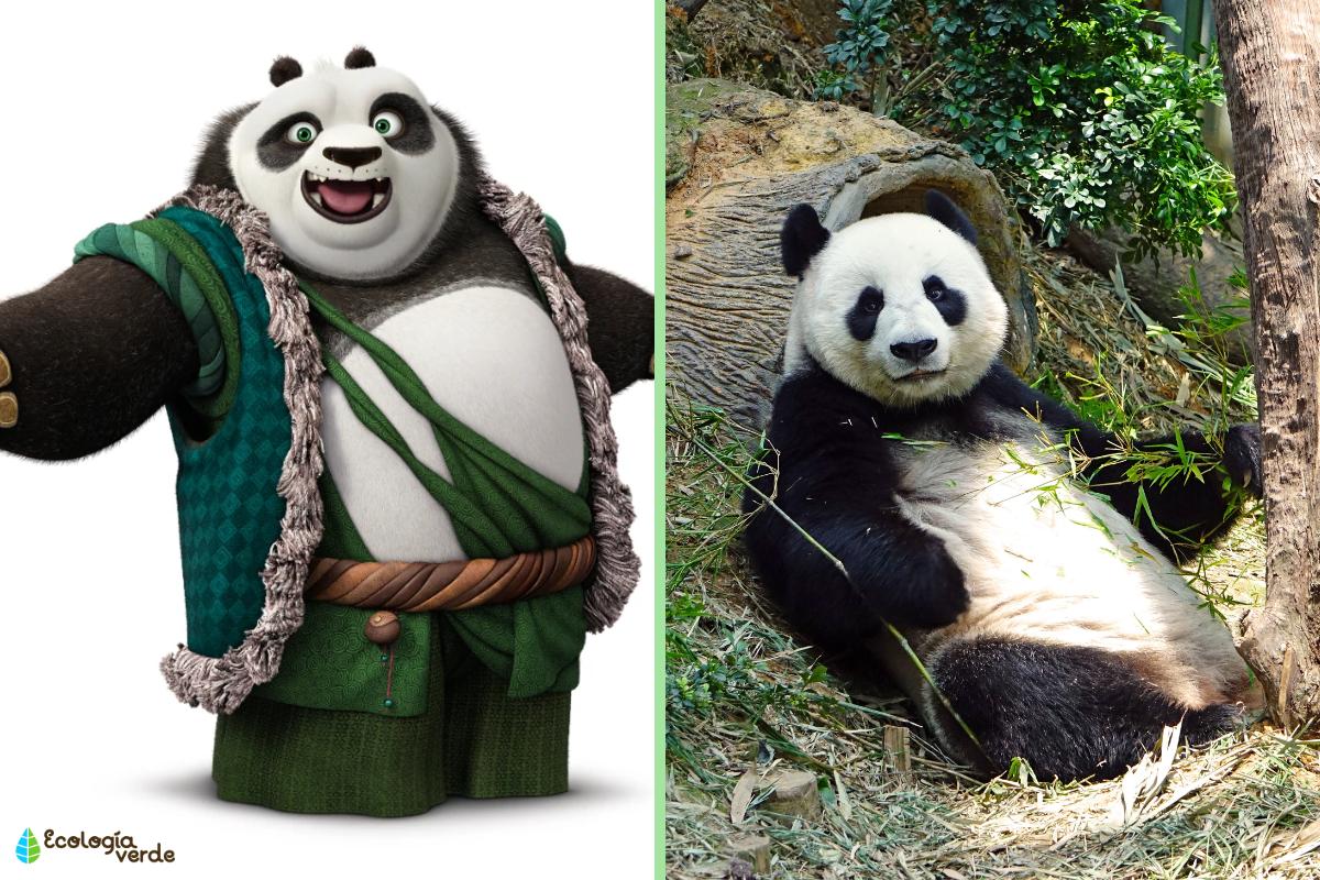 Po, conocido también como Maestro Po es el protagonista de la película. El personaje está basado en un oso panda gigante (Ailuropoda melanoleuca) que pasa sus días siendo maestro del arte marcial Kung Fu. Po es un personaje tolerante, lúdico y un poco torpe. En la realidad, solo unos pocos ejemplares de panda viven en estado de libertad, por ende la especie se encuentra vulnerable a la extinción.