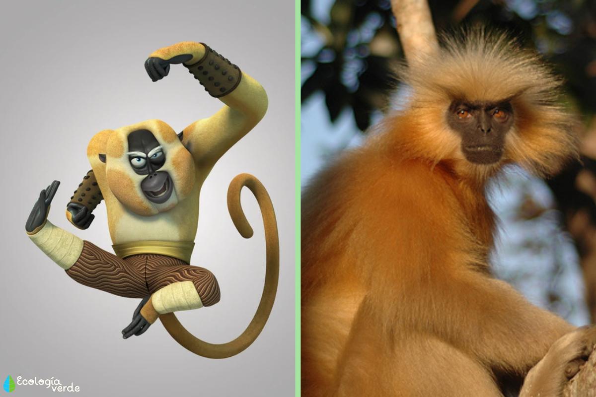 El Maestro Mono es un personaje inspirado en la especie de langur dorado (Trachypithecus geei). Es una especie que habita en algunas regiones de la India y de Bután. En la actualidad es una especie que se encuentra en peligro de extinción. El Maestro Mono, forma parte de los Cinco Furiosos y su personalidad resulta muy divertida ya que es travieso, amistoso y entusiasta.
