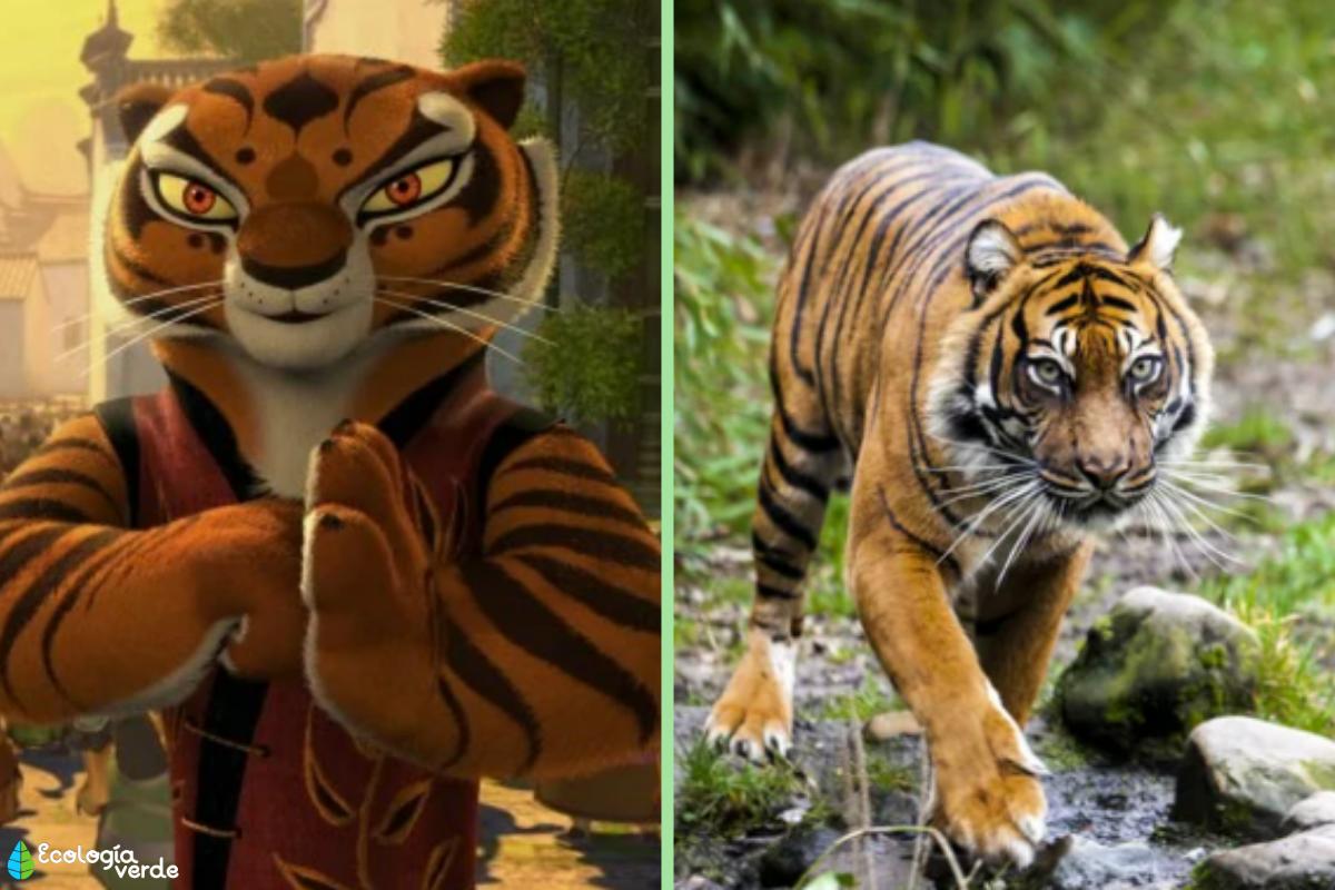 El personaje de Maestra Tigresa, la hija adoptiva de Maestro Shifu y miembro de los Cinco Furiosos, está basado en la especie de tigre del sur de China (Panthera tigris amoyensis) que se encuentra en peligro crítico de extinción. El personaje se destaca por su personalidad: valiente y predispuesta.