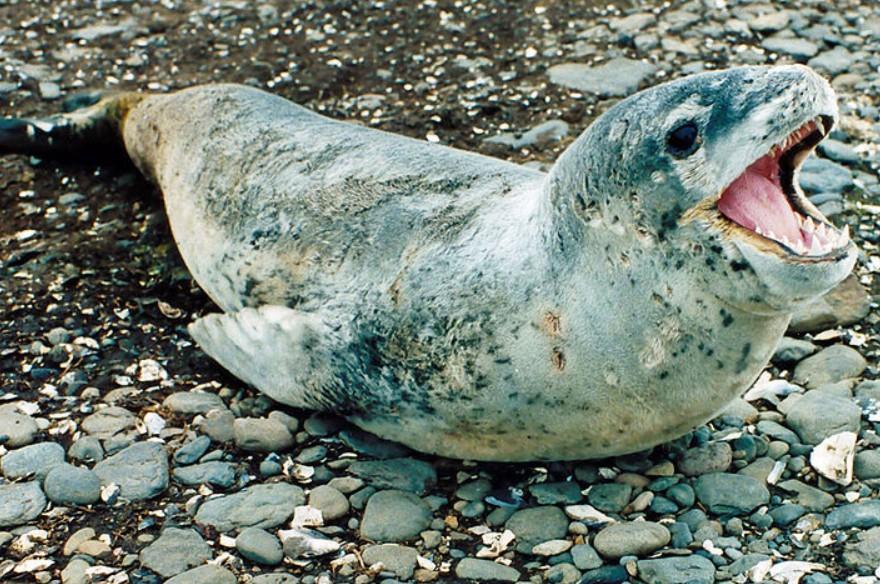 Otro de los animales antárticos más conocidos es el leopardo marino (Hydrurga leptonyx). Caracterizada por ser bastante agresivo, entre los mamíferos antárticos se encuentra esta especie de carácter solitario y que presenta un color gris oscuro, con una tonalidad gris clara en el vientre.