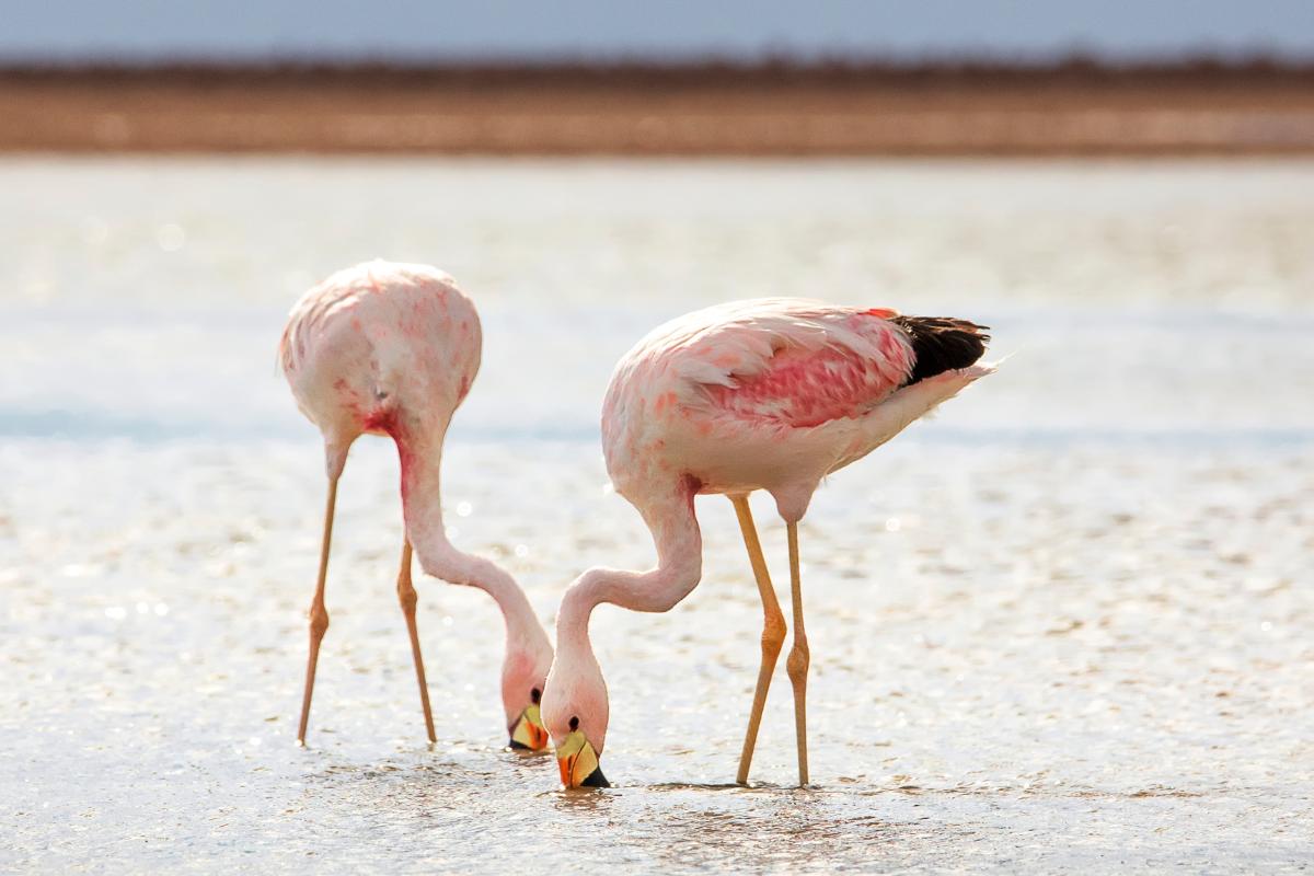 Estas aves se diferencian de otros flamencos porque tienen un triángulo negro en la cola, así como también en el pico. Habitan cerca de lagunas salinas que se abren entre las cordilleras andinas, donde se alimentan de pequeñas algas llamadas diatomeas. Se les puede encontrar también bajo el nombre de parihuanas.