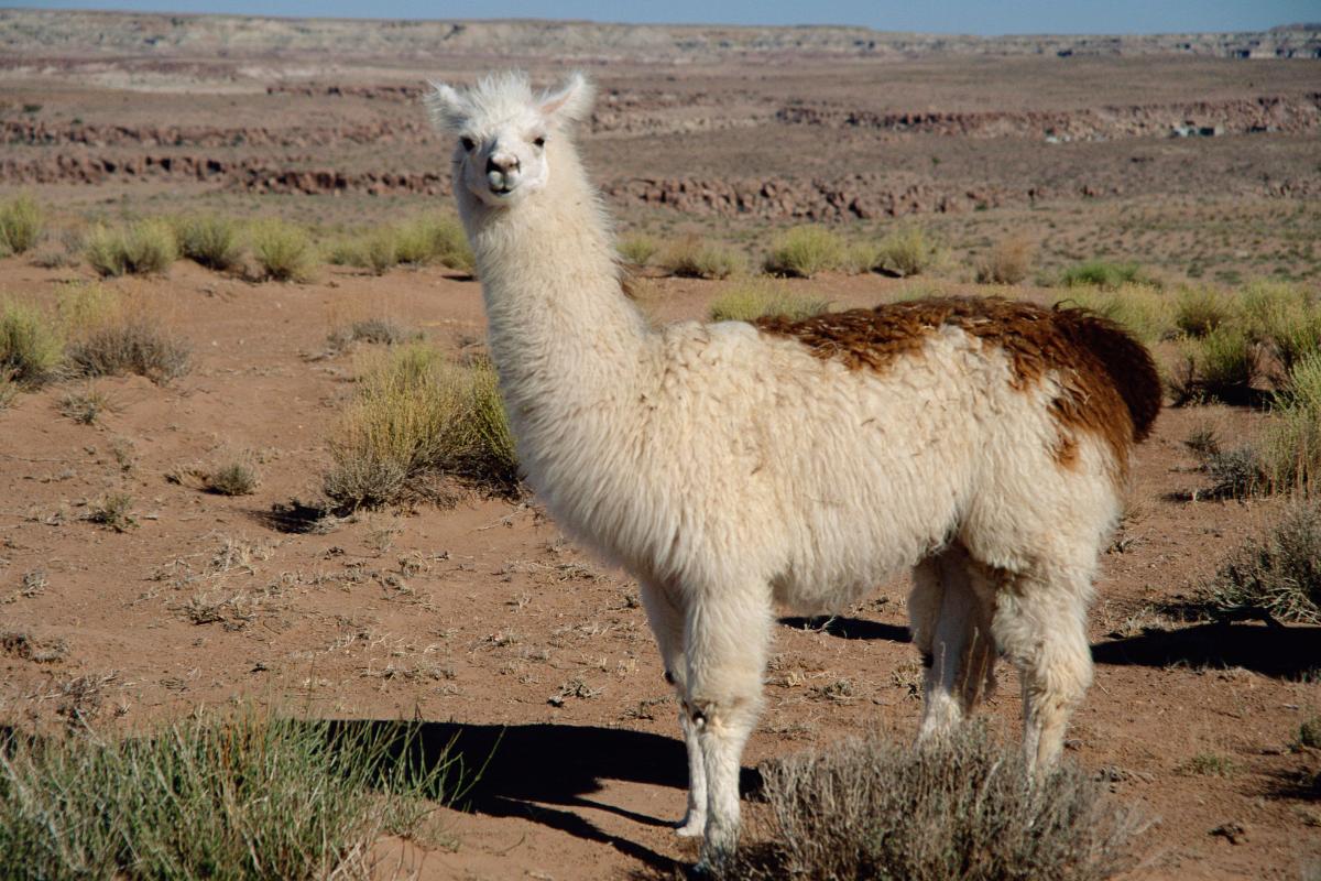 Las llamas son el animal más emblemático de la cordillera de los Andes, y no es para menos, pues es endémico de esta zona. Son característicos por tener cuello largo, rostro negro y un suave pelaje blanco que se usa para textiles, aunque también se aprovechan como animales de carga y para carne de consumo. Esto se logró mediante la domesticación a partir de los guanacos, Lama guanicoe.