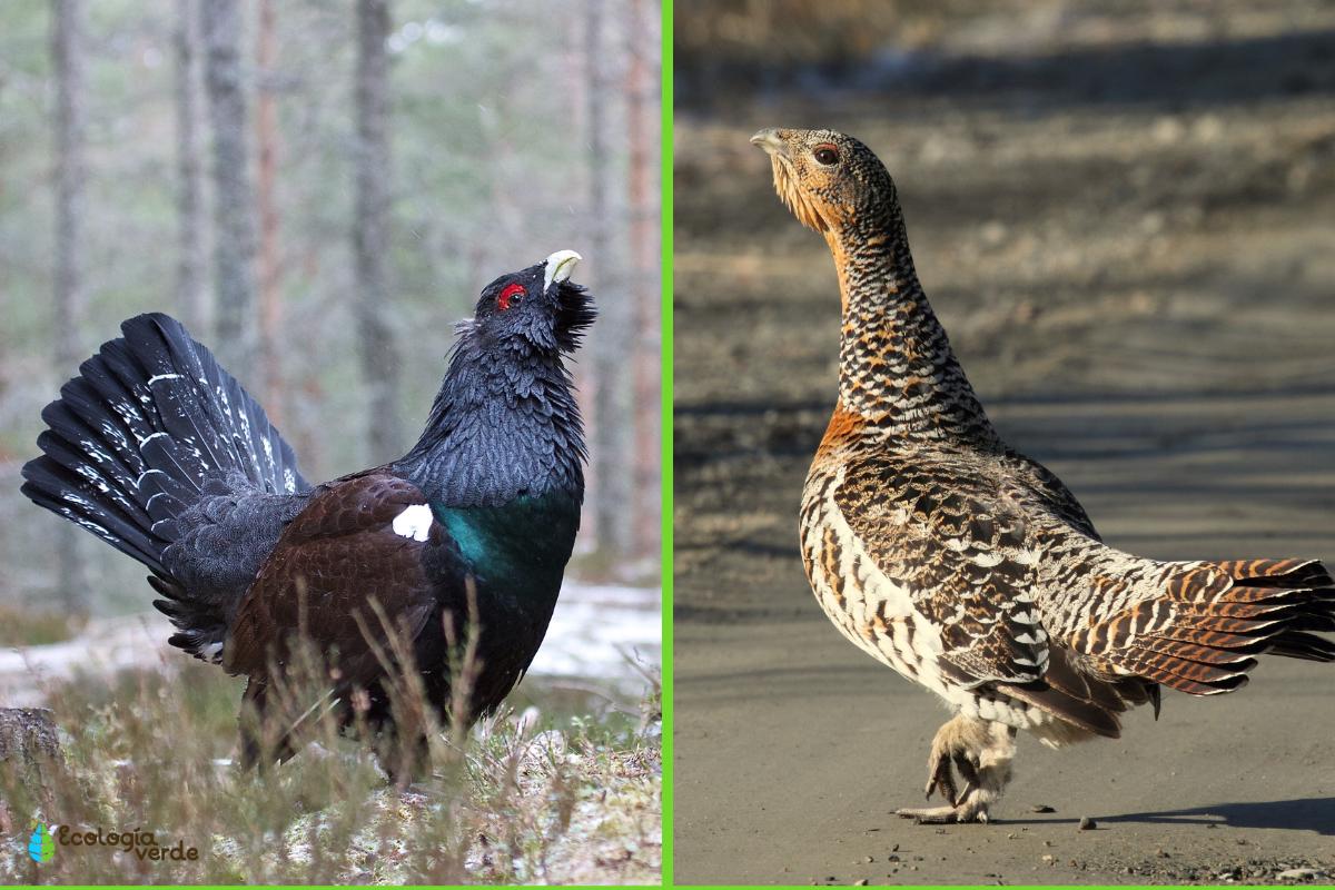 El urogallo (Tetrao urogallus) es un ave que habita las montañas de los Pirineos, los Alpes y el Jura. Se trata de una especie de mediano tamaño con un marcado dimorfismo sexual: los machos son de color negro brillante y las hembras son pardas con manchas negras y amarillentas.