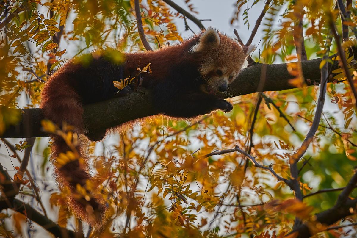 En otoño, el panda rojo incrementa su consumo de bambú, frutos y pequeños invertebrados para reforzar sus reservas de energía antes de la llegada del invierno en las montañas del Himalaya. Su pelaje, ya de por sí denso, se vuelve aún más espeso para resistir mejor el frío. Además, esta especie está en peligro de extinción debido a la pérdida de hábitat y la fragmentación de los bosques, por lo que cada cambio estacional supone un desafío aún mayor para su supervivencia.