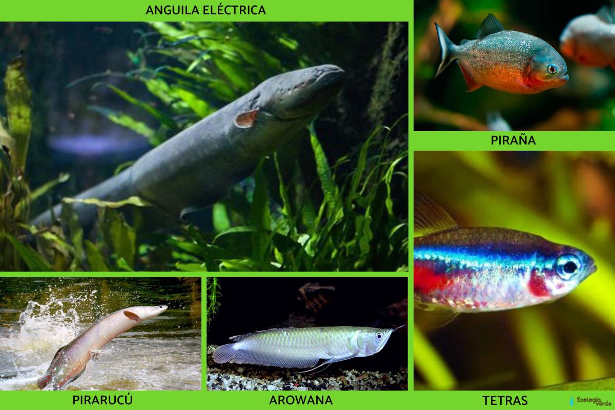Los animales acuáticos endémicos del Amazonas ocupan también un gran porcentaje de la biodiversidad faunística de todos y cada uno de los ecosistemas de la región amazónica. Algunos de los peces del Amazonas más característicos son: