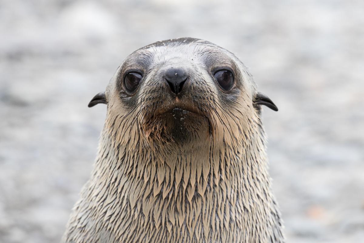 A pesar de su nombre, no se distribuye propiamente en la Antártida, sino en las islas subantárticas, que de cualquier forma están en la zona. Se caracteriza por tener el hocico corto, dándole un aspecto único entre los lobos marinos. Su pelaje grisáceo a pardo, y se alimenta de krill.