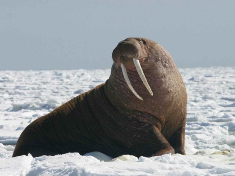La morsa del Pacífico es un animal que habita exclusivamente en los mares del Ártico. Son especies de gran tamaño con largos colmillos de marfil que deben emerger fuera del agua a la hora de parir, amamantar a las crías o descansar. Las morsas, al contrario que las focas, no nadan continuamente y ascienden a las balsas de hielo de un área de alimentación hacia otra. Esta especie se ve amenazada por la cacería por sus colmillos de marfil y su grasa y por la exploración de gas y petróleo y la contaminación de los océanos que dañan su hábitat. Tanto son las amenazas, que en el año 2008 se solicitó su entrada en la lista de especies en peligro de extinción.