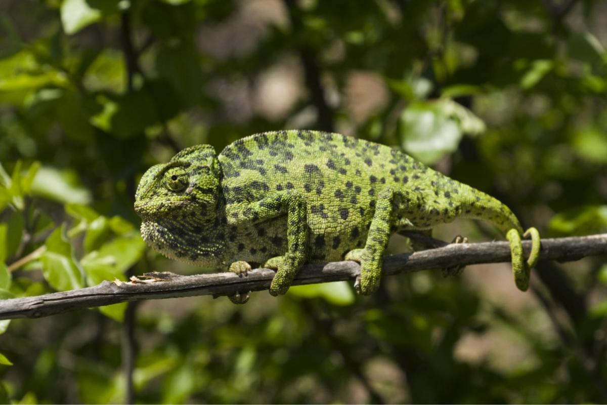 Sin embargo, el Chamaeleo chamaeleon o camaleón común cuenta con unos 50 ejemplares por hectárea en España y, concretamente solo se encuentran en algunos pinares de Málaga, lo que le hace estar en la lista roja de especies en peligro en España.