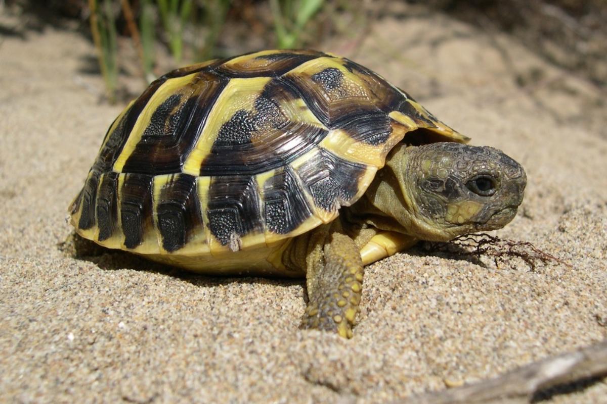 Testudo hermanni es el nombre científico de la tortuga mediterránea, la cual se conoce así por habitar entre la vegetación de las costas del Mediterráneo. Esta tortuga terrestre, como la anterior mencionada, corre grave riesgo de desaparecer, al menos en estado de libertad.