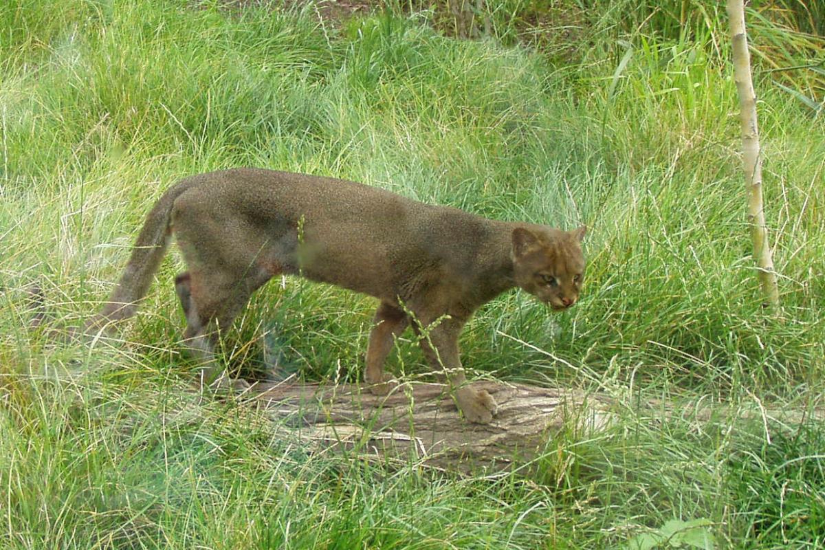 El jaguarondi es un felino pardo de talla mediana. Es similar a un puma pero más pequeño, de 60 a 80 centímetros de altura. Tiene orejas pequeñas y hocico grande. Aunque en otras partes de América Latina no esté en peligro, en México sí lo está y la normativa mexicana lo coloca como especie amenazada por la pérdida de hábitat causada por el cambio de uso de suelo hacia el agropecuario.