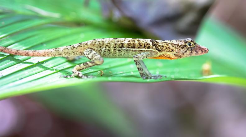 La lagartija Anolis (Norops humilis) es una especie de reproducción ovípara y presenta una distribución que ocupa los países de Costa Rica, Panamá y Nicaragua, principalmente. Tiene hábitos semi-arborícolas y vive en bosques primarios y secundarios, húmedos, lluviosos y montañosos. Se alimenta principalmente de insectos y artópodos.
