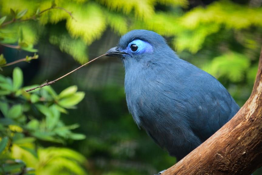 - La cúa azul (Coua caerulea): se distribuye por las selvas del noroeste y del este de Madagascar. Es de color azul intenso.