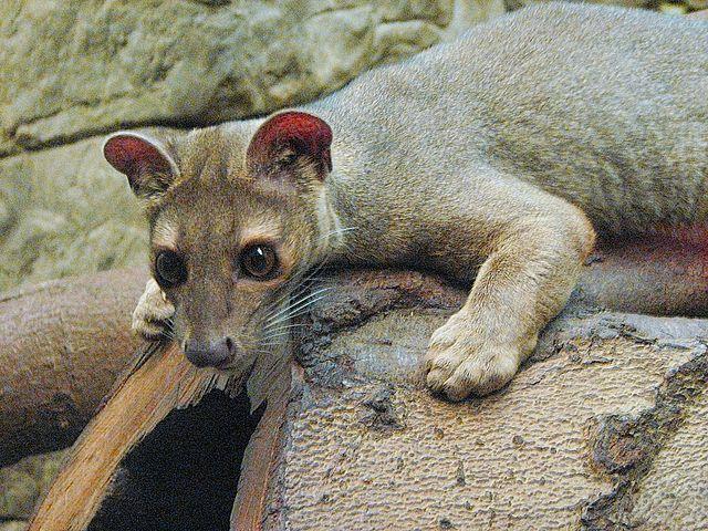 - El fosa (Cryptoprocta ferox): es el carnívoro nativo más grande de Madagascar. Tiene un pelaje corto rojizo, con garras que le permiten saltar de un árbol a otro. Presenta hábitos nocturnos y se alimenta de lémures y aves que a veces caza al vuelo. Son animales solitarios y territoriales.