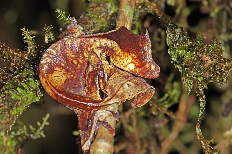 - El gecko de cola de hoja satánico (Uroplatus phantasticus): no pasa desapercibido entre la fauna de la isla. Es una especie arbórea de los bosques tropicales de Madagascar. Su cola, aplanada y con apariencia de hoja en descomposición le permite una óptima mimetización.