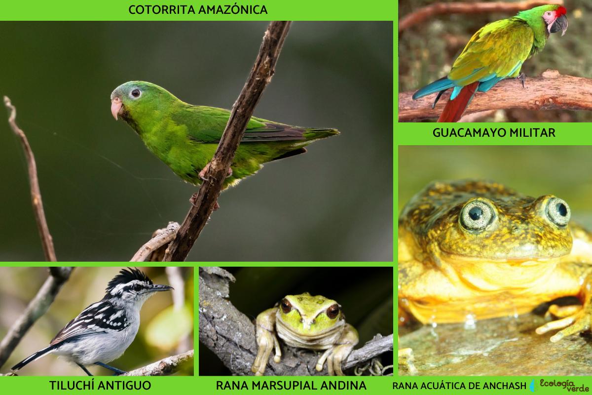 Los anfibios también son animales de Perú que se encuentran en peligro de extinción, como por ejemplo: