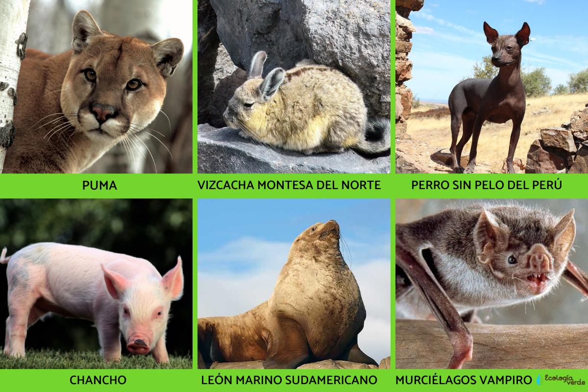 Estas son imágenes de cada uno de estos animales peruanos, en el mismo orden que estas listas.