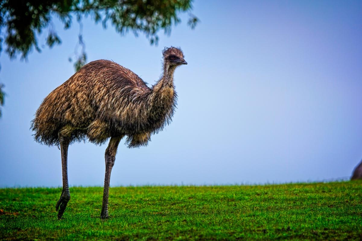 El emú es el ave más grande de Australia y la segunda más grande del mundo, justo detrás del avestruz. No vuela, pero compensa con unas patas poderosas que le permiten correr a más de 50 km/h. Al igual que el avestruz, tiene un cuerpo robusto, cuello largo y plumas suaves que parecen pelo.