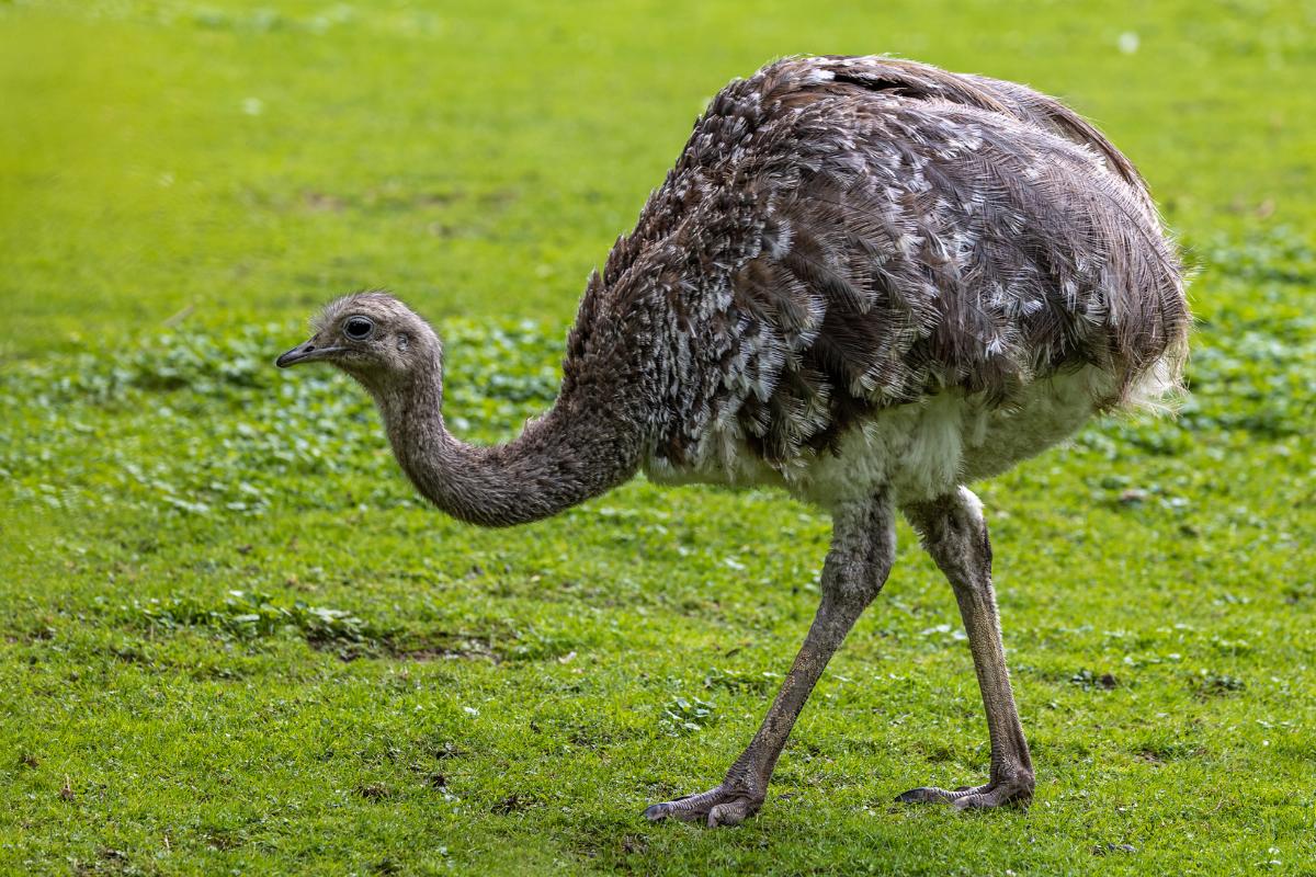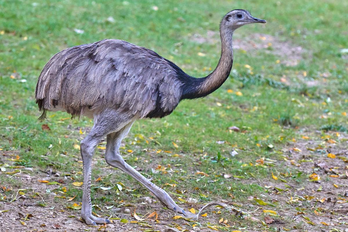 Originario de América del Sur, el ñandú común se parece al avestruz tanto por su tamaño como por su aspecto general. Aunque es más pequeño, puede llegar a medir hasta 1,5 metros de altura y también es un ave no voladora. Tiene patas largas y fuertes, alas cortas y plumaje grisáceo. Una diferencia notable es que tiene tres dedos por pie, como el emú, y su cuello es algo más corto. Comparte con el avestruz el hábito de formar grupos y vivir en grandes espacios abiertos, como pampas y sabanas.