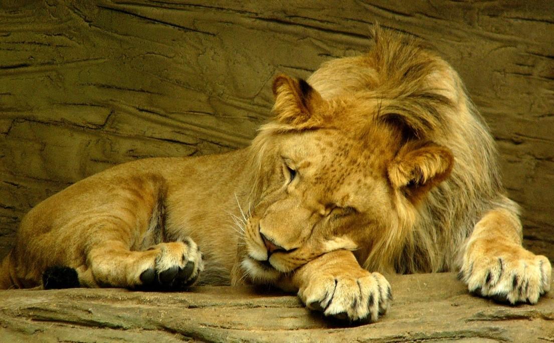 El león (Panthera leo) es un mamífero carnívoro perteneciente a la familia de los felinos que actualmente presenta su distribución reducida al continente africano y asiático. Sus poblaciones están cada vez más dispersas y fragmentadas por el accionar humano, lo que pone en riesgo su estado de conservación. Los leones pasan una gran cantidad de tiempo descansando, pueden llegar a dormir unas 20 horas al día, y solo utilizan las 4 horas restantes para alimentarse y caminar.