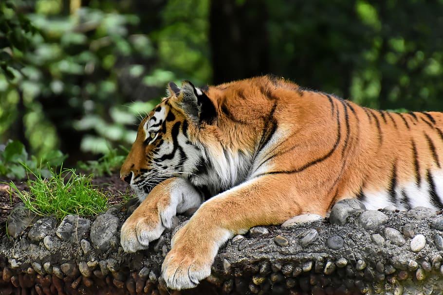 El tigre (Panthera tigris) es un felino asiático, solitario y carnívoro que suele encontrarse en bosques densos y en zonas abiertas como sabanas. Llega a dormir más de 16 horas y, generalmente, lo hace durante el día, ya que en la noche aprovecha para cazar y desplazarse en busca de pareja.