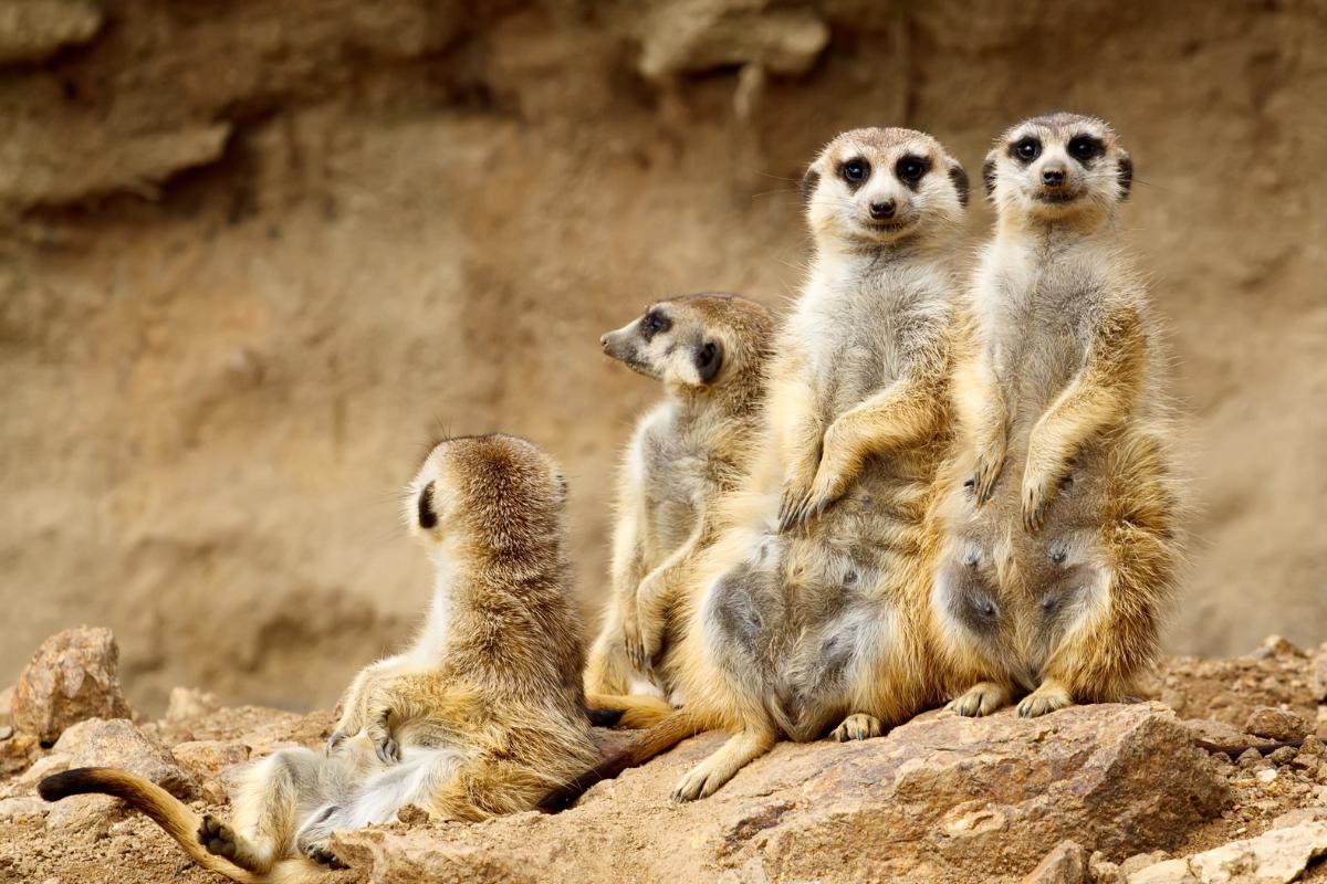 Las suricatas (Suricata suricatta) son pequeños mamíferos de hábitos diurnos y altamente sociales que viven en grupos estructurados de hasta 40 individuos, llamados clanes o "mobs". Son animales territoriales y cooperan en diversas tareas como la vigilancia, la alimentación, la excavación de madrigueras y el cuidado de las crías.