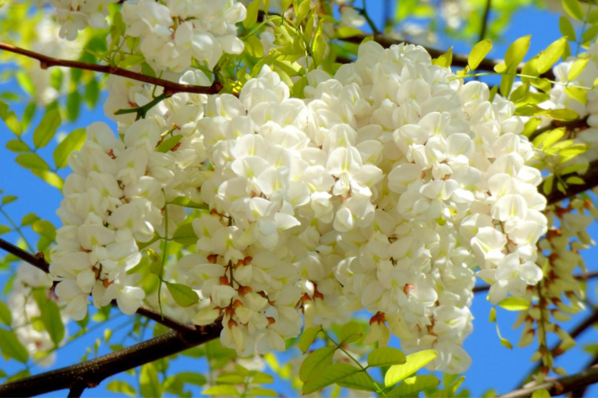 La flor de la falsa acacia es hermosa, de tamaño pequeño y con botones alargados. Las flores están agrupadas en péndulos de 8 a 20 cm y libera un exquisito perfume. La flor, además de su belleza, se usa como un remedio naturista para curar diversos malestares, pues es diurética, antiséptica y antiinflamatoria. El árbol es endémico del este de Estados Unidos, pero se ha introducido con bastante éxito en diversos países. Si quieres plantar este árbol, aquí puedes consultar el precio de sus semillas.
