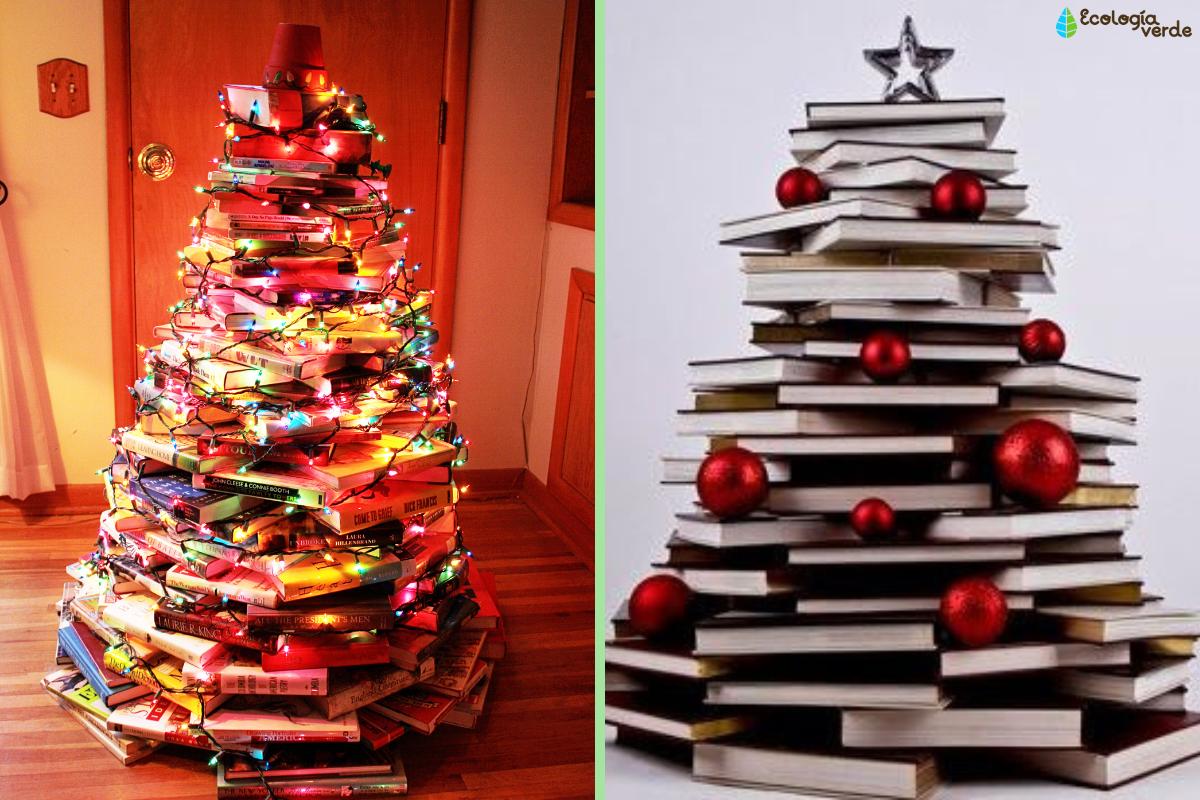Algunas de las ideas de árboles de Navidad con material reciclado son con rollos de papel higiénico, palets, corchos, botellas de plástico, botellas de cristal, ramas secas, botones, hueveras, piñas y libros.