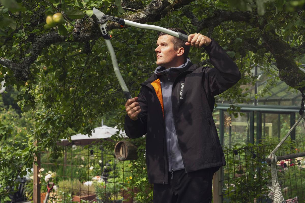 Para cortar pequeñas ramas o chupones de los frutales, son suficientes unas tijeras de poda de una mano o de dos manos. Para ramas más gruesas puedes ayudarte de una sierra de poda, pero si tu jardín combina árboles de diferente tamaño y altura, es necesario apostar por maquinaria que te permita cortar limpia, rápida y cómodamente.