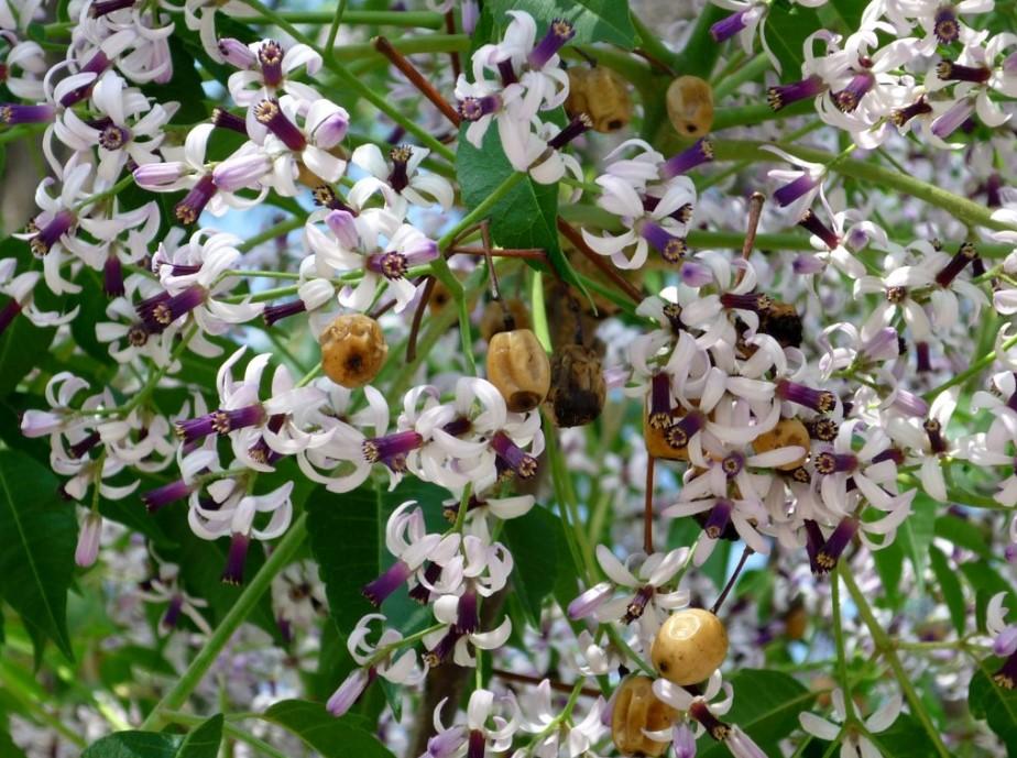 Al igual que la jacaranda, la Melia azedarach, también llamado cinamomo, agriaz, piocha, o árbol del paraíso, es un árbol que se ha utilizado por su valor ornamental y que, desde hace poco tiempo, también se utiliza para limpiar y purificar el aire de las ciudades. Es capaz de generar mucho oxígeno y absorber 1 tonelada de C02 al año.