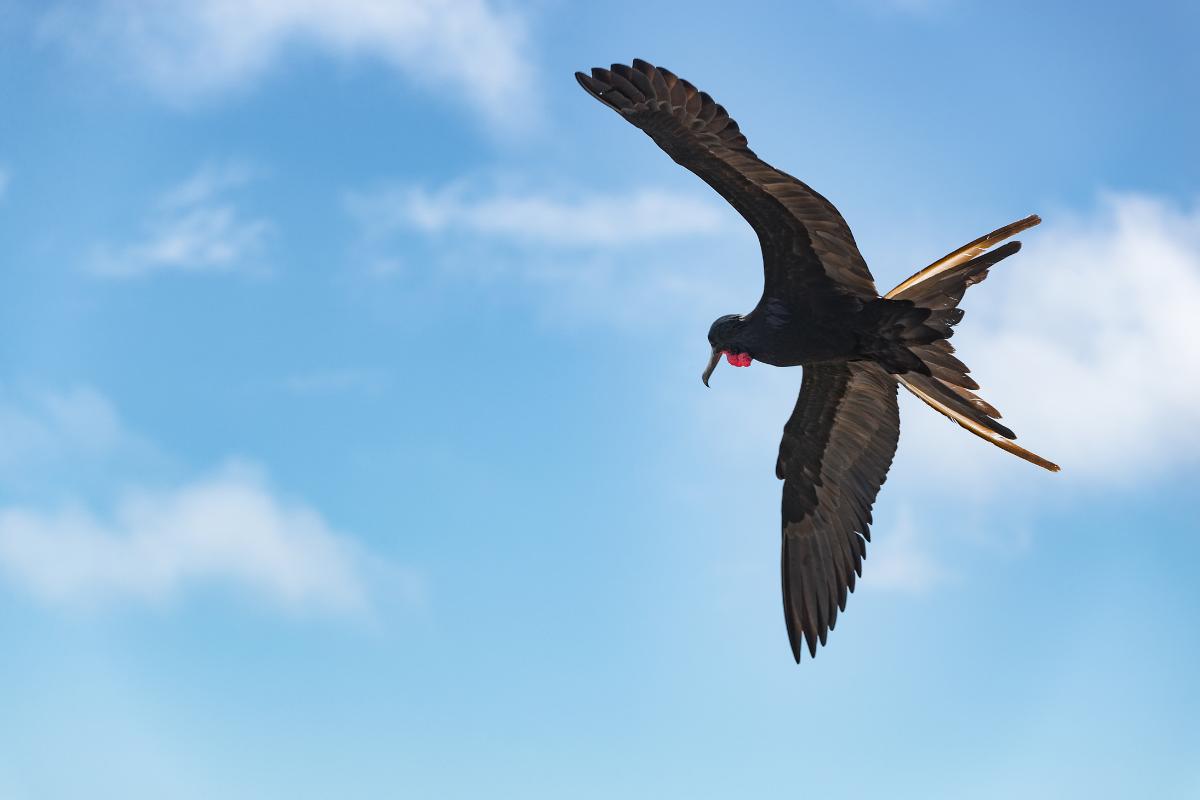 Se distribuyen en la franja tropical y se caracterizan por ser de color negro, pico muy largo y curvo. Los machos tienen un saco gular en el cuello de color rojo que inflan para atraer a las hembras. Son bastante grandes, con envergadura alar de 2 metros. Cazan en aguas abiertas buscando peces, pulpos y calamares. Es común que roben presas a otras aves marinas.