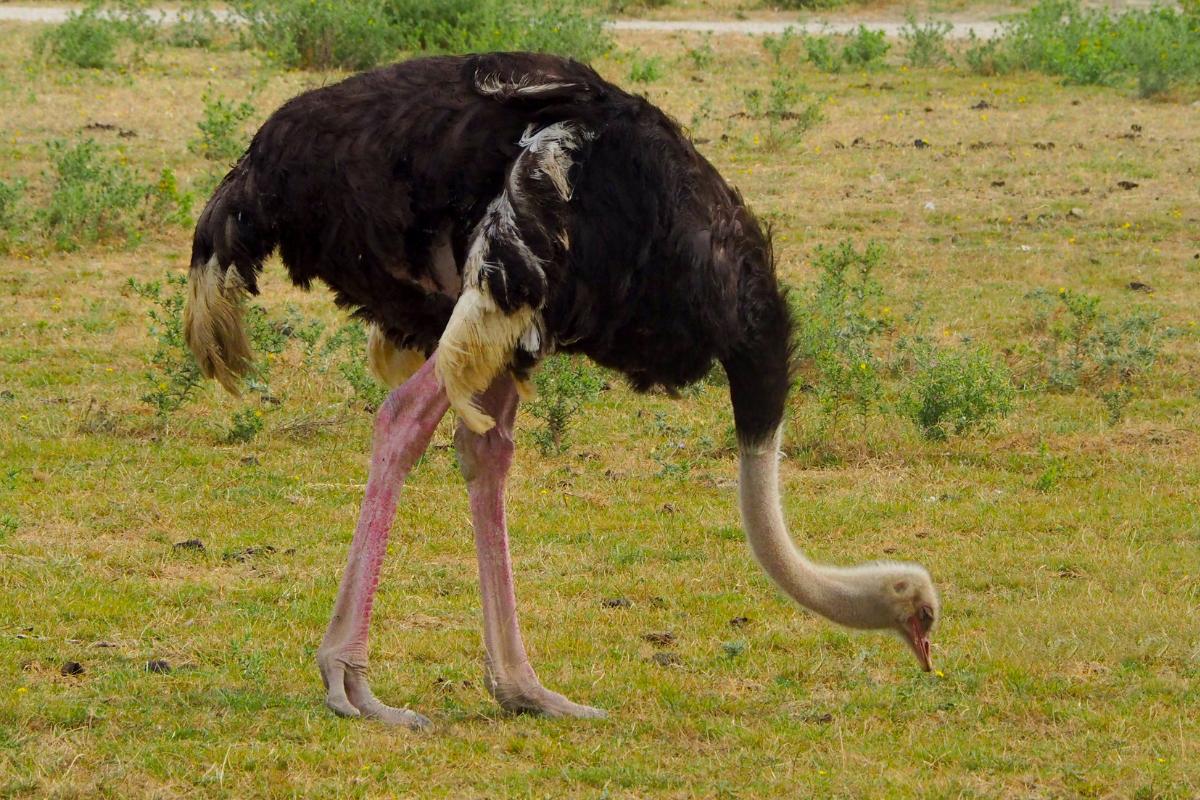 - Aunque existe el mito de que el avestruz "esconde la cabeza en la arena", en realidad esto no ocurre: cuando se siente amenazado puede agacharse al suelo para camuflarse, pero no entierra la cabeza.