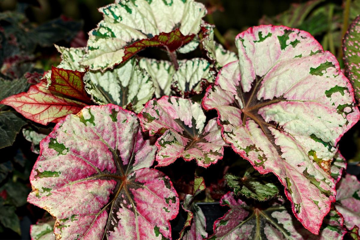 Son de hojas oscuras, pero pueden encontrarse en diferentes variedades y colores. Algunas de las variedades de la begonia rex son: